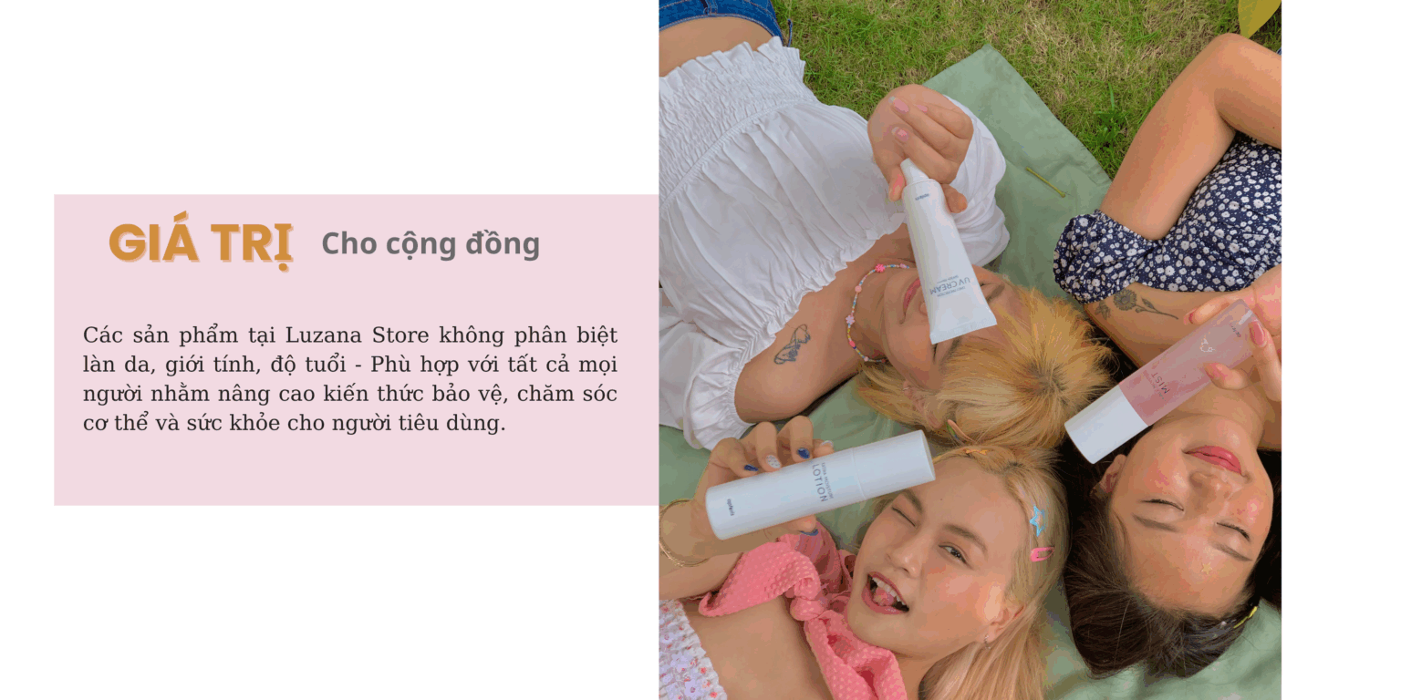 Các sản phẩm ở LUZANA STORE phù hợp cho mọi làn da, độ tuổi, giới tính. Không đơn thuần chỉ là sản phẩm dưỡng da, LUZANA STORE còn mong muốn mang tới những “liều thuốc bổ” cho tinh thần của bạn, giúp bạn yêu thương bản thân một cách trọn vẹn nhất.